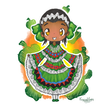 Adorable drawings! I'm U.S. American but my aunt and cousin are Puerto Rican. I've been to El Yunque and the towns, so I really love Puerto Rico. I like that her little hair curl represents El Yunque, and that she was like a boy when she was little. Your design is very cute, and I think her personality is very accurate.