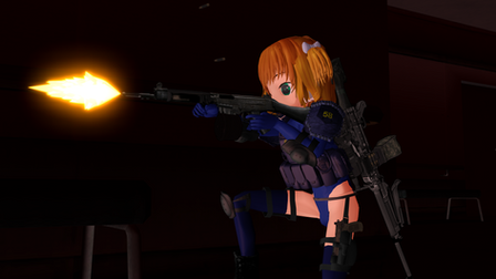 On the flipside, I can't believe that a replacement muzzle flash had been available to me this entire time--and right under my nose to boot~! MMDFuph had put out a muzzle flash and bullet trail pack years ago and it didn't occur to me until now that I could've been using that this entire time. To get the most bang for your buck, you'll have to tweak it in PMD/PMX Editor to work with Autoluminous2(dot)x but it's worth it. So far I still have to get the muzzle flash scale right but the bullet trails are dead-on what I'm looking for. OuO