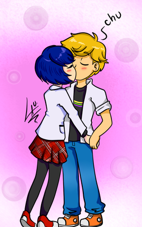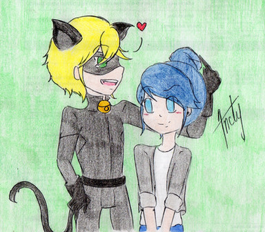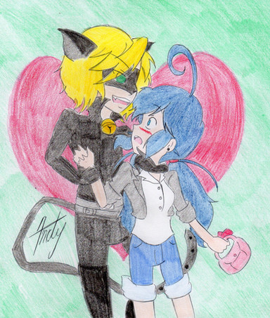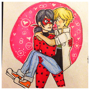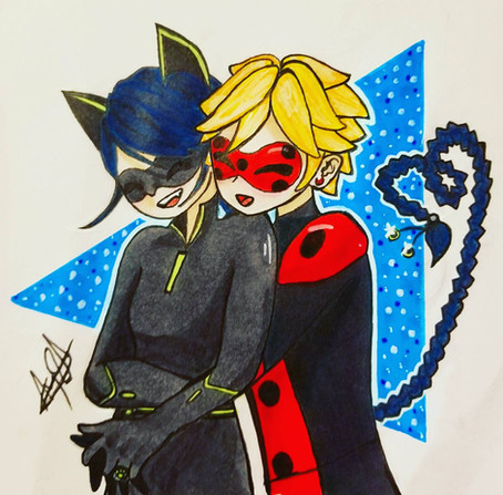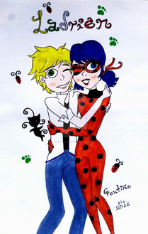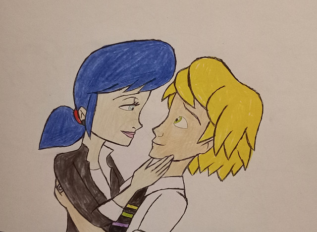 Con plumones,este esΒ el tercer dibujo de esta ship que hago x3No suelo dibujar mucho Adrinette a pesar de que me gusta :b