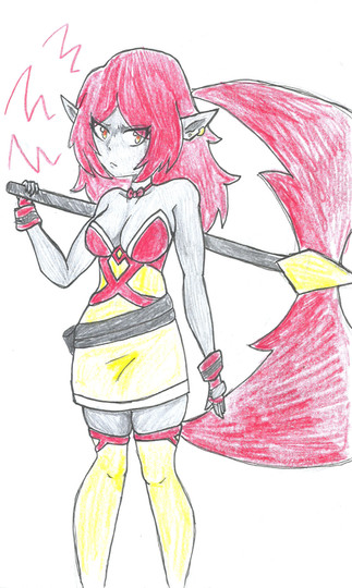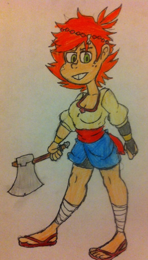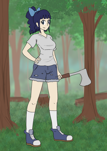Por esa razon no le dibuje falda, y ella se dedica a trabajar como leñador, ya que otros trabajos para ella son muy delicados :b