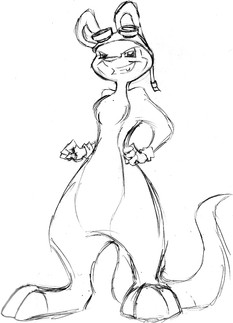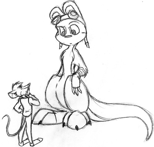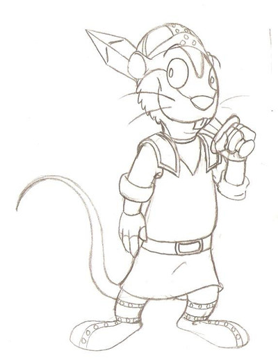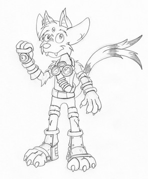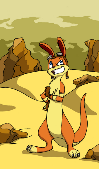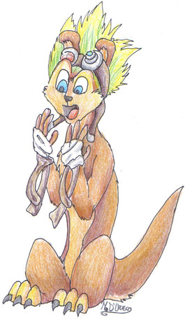 Haven City is a dangerous place for a defenseless ottsel like Daxter, but even risking all the pitfalls, the little guy never ceases his search for his old friend Jak after the elf's capture by Erol and the Krimzon Guard.I rather like this picture (I got his gloves right and remembered his wrist-rings!). The crouching pose is one of my favorites for animals like him, and on Dax, it makes him look even more cuddly.