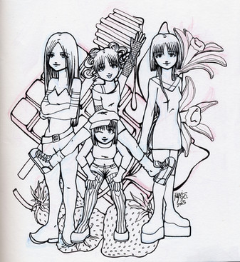 This is a drawing based on an idea I had for a story. The story only has minor details, and I don't expect to ever have the chance to develop it properly, but I like the characters. All three are extremely different and I think the drawing shows that. This is another one of my drawings that I expect to color on photoshop some time.Related content