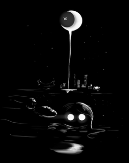 I like how simple this painting looks, the black and white scenario mix well with the gray character