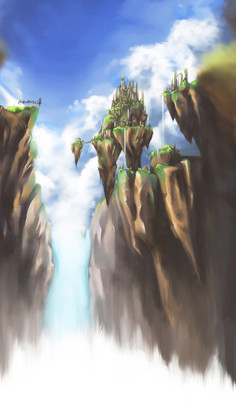 I've always loved floating cities and floating landscapes, and the little chunks of land you've layered here really conveys the fantasy.