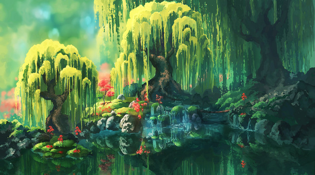 #bench #bridge #concept #digital #environment #fantasy #flying #green #illstration #islands #lamp #landscape #nature #painting #scenery #spring #tree #painttoolsai #chibionpu