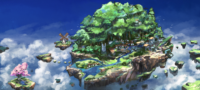 Wow this is so pretty! The floatyness and and the bright color scheme remind me of Aincrad from Sword Art Online.