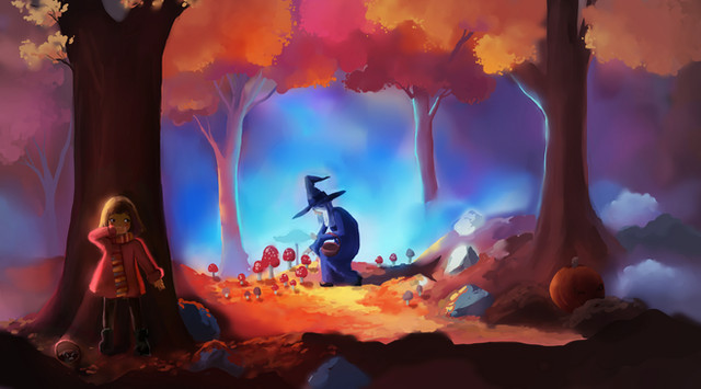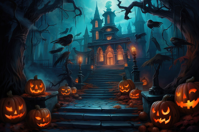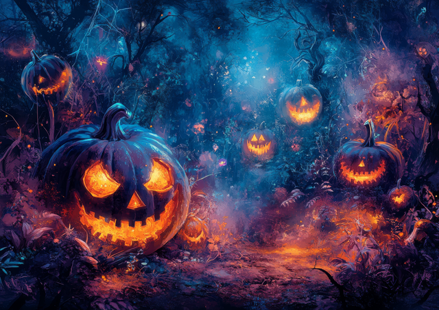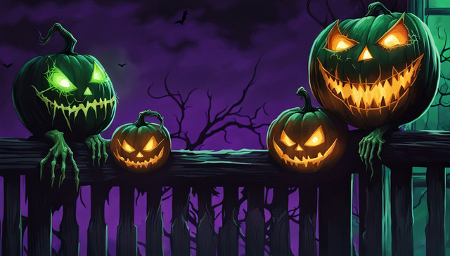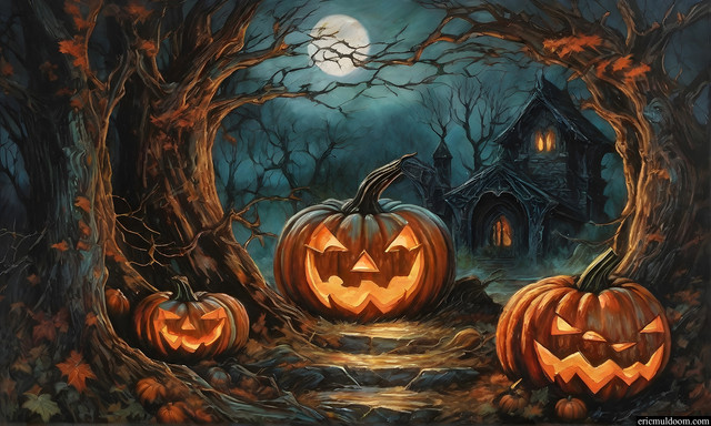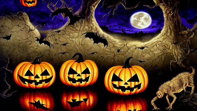 #halloween #street_lamps #branches #creepytrees #cresentmoon #digitalart #holiday #jackolantern #moon #night #pumpkins #scary #spooky #streetlamps #trees #wallpaper #woodenbridge #painttoolsai #jack_o_lantern #chibionpu #willowtheowlhouse