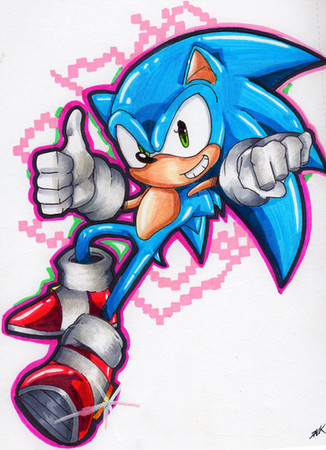Had lots of fun coloring Sonic; while drawing this, I used up my most important marker, a light blue especially for Sonic! Good thing I got my tablet pen now!