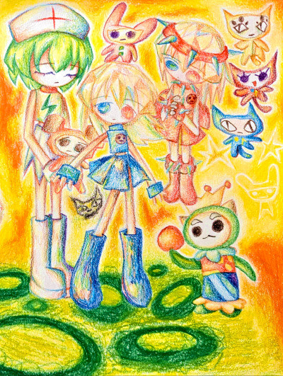 I need to get used to more greens. Usually after finishing a picture I'll make a compressed version and level out the colours, I always add more red or blue but never any green I never seem to colour anything that warrants adding green...it's always red. Maybe I should try doing some mood pictures to get some practice with green.