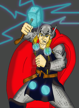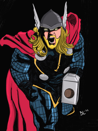 yeah I drew this about a month ago. Decided to ink it, color it, and give it a slightly different photoshop treatment than usual.And no I didn't forget to give him his hammer, I just chose not to.
