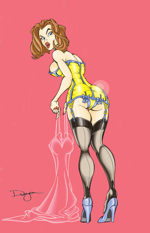 "Ooh, being a superheroine means getting to play dress-up every day! I dig this new costume for my next Chickfighter movie. So hawt!"This is my coloring of a black and white by .