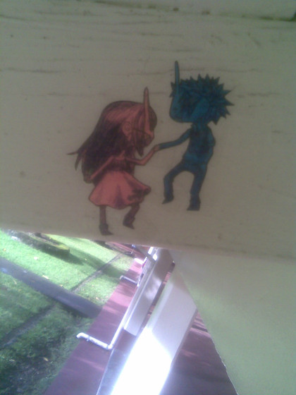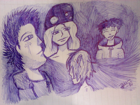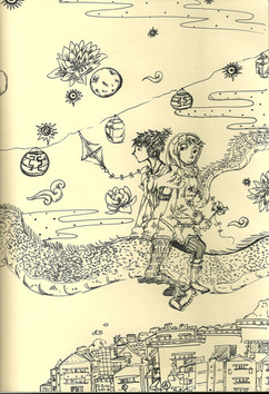 One day, I was drawing a person that seemed to fit in the person that Kosa drew, so we decided to draw a collaboration in another blank piece of paper.This is the result.
