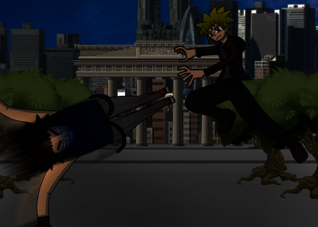 The first encounter between the host of Satan and the Cyborg Exorcist.All characters in this pic belongs to me!