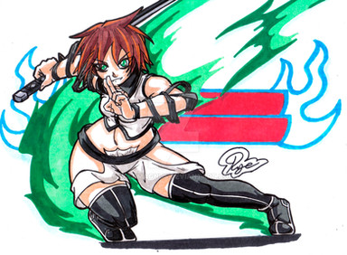 Haven't used markers for a while and wanted to make a quick drawing before heading out for vacation, so here's Akane striking a pose!See you when I get back!