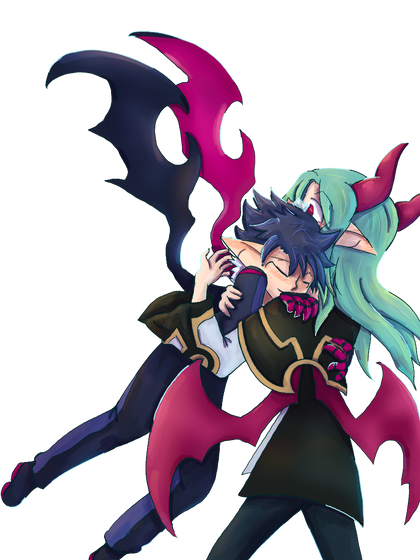 Here's my entry for the Diamond in the Rough contest hosted by . See here for details .In the voyage of a thousand miles, through every storm, beast, and adventure, even the deep delve into Hell itself could do nothing to separate the bonds of sisterhood. Both started as frail humans, but in their trust and love they rose to greatness as archdemonesses. Though they are names to be feared, beneath it all they are still the two sisters watching each others' backs. Who are you to think you can break that?