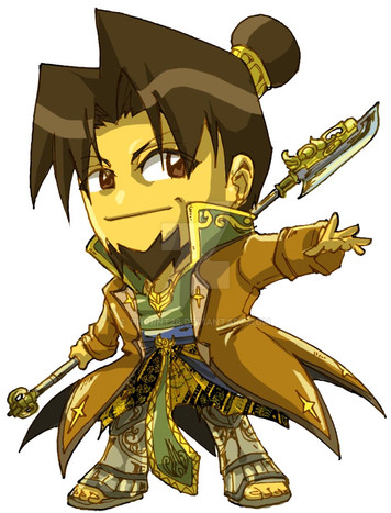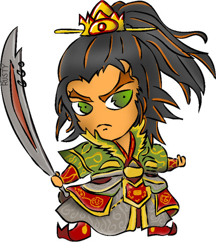 You just made one of the most unattractive main characters in the ravages of time, cute and adorable beyond what people thought was possible! HE IS SO DAMN CUTE! *steals chibi Lu Bu* You can have the realer one. Awesome job on the shading and everything else. I really like the dragon's shadow behind him! Great job!