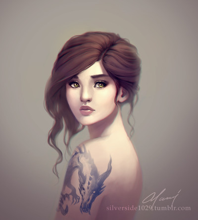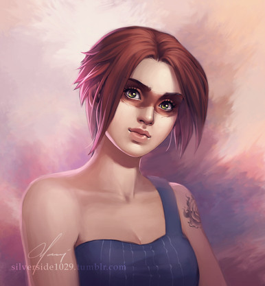 As for the critique portion, as I do love hair with volume, I get this illusion that the back of her head is a little large? But it may be just her hair, perhaps it could be tweaked a bit. Maybe have that side of her hair flow a little more upward? The neck could use a little fine tuning in definition, but only slightly because I can see you used a technique to give the illusion of depth. (Kind of like with her arm going into the shadow.) Also, looking more closely, I get a slight conflict with her shoulder (the one that's in the light) and how it's connected to her neck, might be a tangent from her shirt makes it appear that way. Hard to tell. But that's all I can see right now. Still a gorgeous piece.