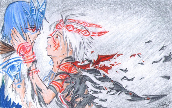 This is for Ta, who requested Azure Kite carrying a bloody Haseo.One of the few drawings I didn't color. Part of me likes how it turned out, part of me's irritated with it.