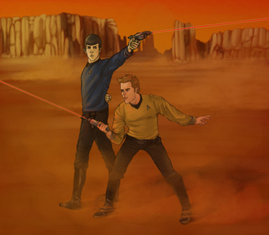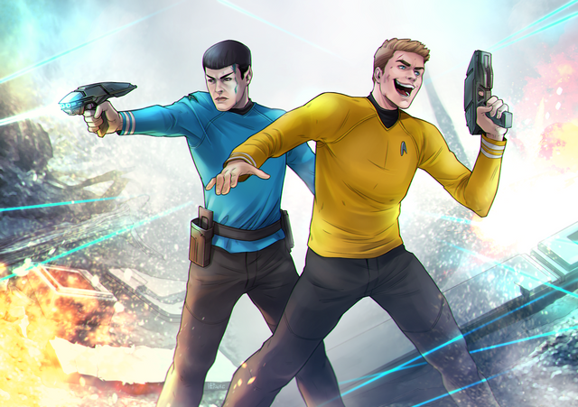 And of course Kirks shirt's ripped xD (I know Spocks is too but...)