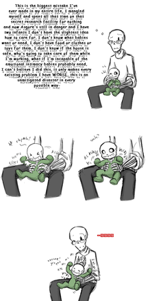 Good job on this! I absolutely loved it! Baby Sans is adorable and gaster's distressed face at Sans crying was so funny!
