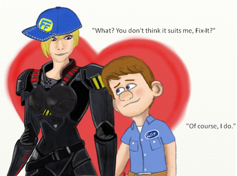 Amazing! You made a great scene how Fix-it Felix discover the power of his hammer π. ( I suppose in the wii the videogamer know that for the information of the character, I think) I love this comic, the reaction of Calhoun is so appropriate. Yes, I could believe that cybug would get more powerful, but not, an amazing power. ^.^ I like so much how you draw the characters, they really looks like comic.