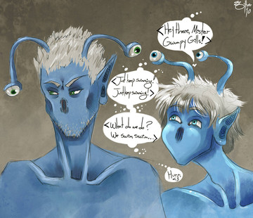 Soorn blinked in confusion. “What?" He grabbed Rover's arm to keep him from waltzing away and put his upper hands on the boy's shoulders. “Now...what’s wrong.”