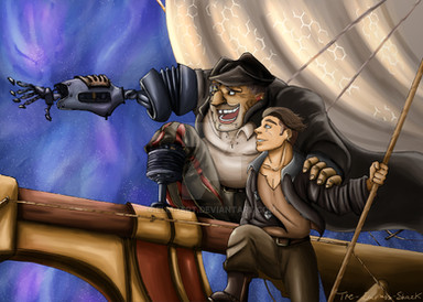 He imagined being out there. He would have a ship--a big beautiful ship that could skip from star to star like a stone across a pond. Everyone would call him 'Captain'. He smiled. "Captain Rover Finnigan." He liked the sound of that. But he wouldn't be alone. Blue would come. He had promised to come. And Soorn. He was attached to this silly old farm but once he saw Rover's amazing ship and truely understood all that the big wide outside had to offer he would come in a second.