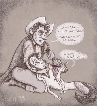 (Sorry for the sudden flood of these but I realized I'd been doing a lot of drawing and like...zero posting. Another clip from an RP with Artoveli . If you want these in order she has kindly made a journal for them with hers and mine. www.deviantart.com/artoveli/jo… )