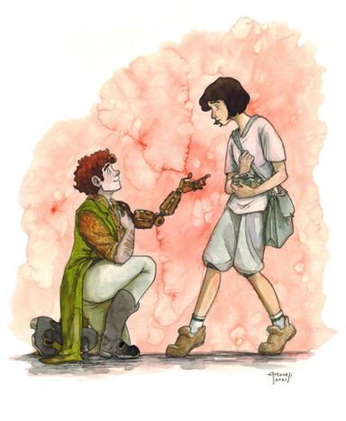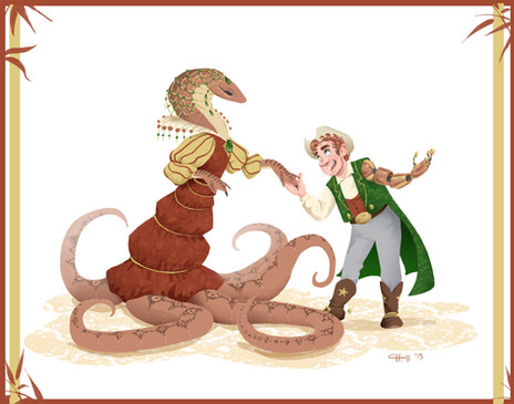 Rover Finnigan and Anne Anderlee heading for a fancy shindig. A bit from a crossover RP with Artoveli . It's been interesting exploring a bit of romance with Rover, something nearly impossible to do in cannon, as he is the only human for a great distance.Anne Anderlee belongs to Artoveli and is from her super fun story Topmost Topaz