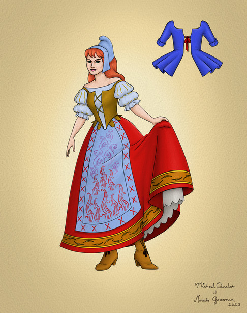 Oh look at her dainty little outfit- charming, yet much more believable than the china-figurine looks worn in early productions. Although of course I know she's meant to look like one of said figurines- but still, I like this outfit better than any I've yet seen on the internet.