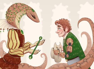 Oh, yes. They'd definately have to tone down Gilbert's grandiose vocabulary. But the stories themselves and the characters are PERFECT for a Disney story. Ida in particular, I think. I mean: Smart Princess, Cranky old King, Handsome Prince, goofy sidekicks, climactic battle. The only thing it's lacking is animal sidekicks. And there WAS a mention of crowing hens. Give Hilarian a horse and there you go!