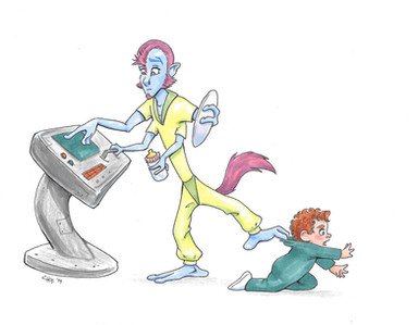 Both the doctor and the nurse scanned the screens, their tails flicking behind them in concentration, and all eight arms tapping at information, looking for the reason for this sudden outburst.