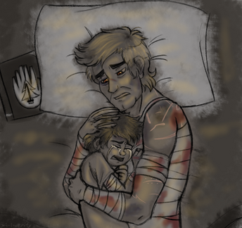 In moments he felt the boy’s shoulders relax a little and the shaking stopped. The slightly painful death grip the boy had around his waist was lessening.