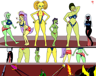 Commission for featuring humanized Applejack and Rarity dressed as two characters from the game Rumble Roses. It's a battle of class and sass or T&A._______________________________________________