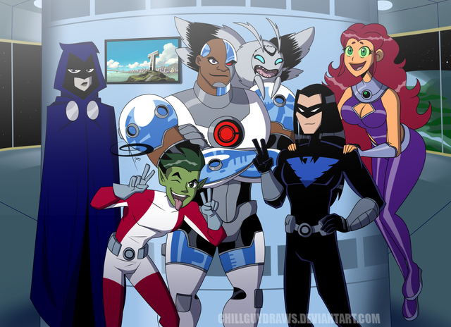 The animation style Teen Titans (in my opinion the best), depicting scenes from their appearances in the New 52.Starfire: Portraying the scene that sparked one of the biggest controversies with DC Comics, but really, we've seen her naked so it's nothing new. But yes, I do not enjoy the new incarnation of Starfire because...........she has no soul. I mean it, nothing. Reading anything she says is like hearing it from a doll. A.......sex doll, if you will.