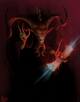 BAAAAAAAAA!!!!(this is mostly a lighting study, but will also turn into more token cards for my new Magic: The Gathering EDH deck. This is why there is a cast of blue and black in the background in addition to the green and red. I figured that the white magic was already in the goat)