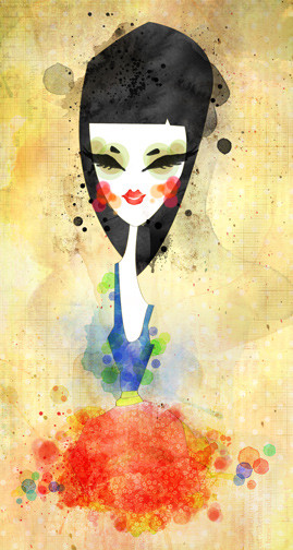 did you scan pieces of fabric for this? briliant! I only sna old paper and wallpapers, but this works really nicely too. Nice drawing too, I love the pose.