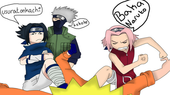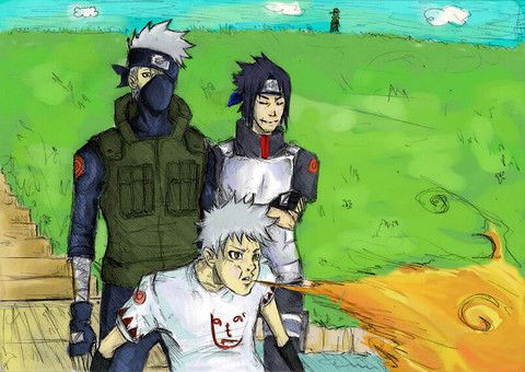The facial expressions on Naruto, Sakura, and Sasuke in the background are hilarious. Sasuke looks a bit more traumatized than the other two. And for some reason I really like how the grass looks. I think it's because it looks like it's blowing in the wind.