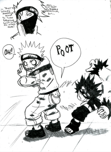 XD Oh, gawd. Of course, the first thing to jump to my mind after seeing this would be the close up of Lee's rear when he's fighting Kimimaro.