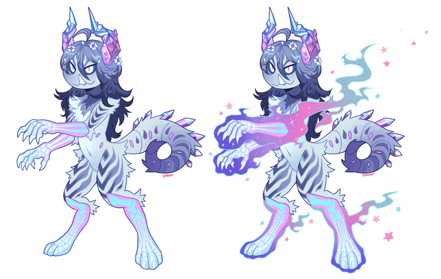 Iridescent horns/claws/flesh