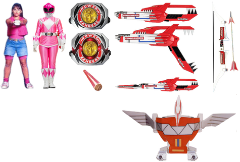This is Carly Spencer 's Ranger form, the Pink MegaForce Ranger. She is second-in-command of the team. With her Phoenix motif, she wields the element of wind. Her main weapon is a laser that doubles as a shield called the Phoenix Flare, which she also wields alongside her Ultra Lightsaber when she's in her power-up mode granted to her and her fellow MegaForce Rangers by the Lights of Orion. Her Autobot partner is Arcee. She pilots the Phoenix Mechazord.