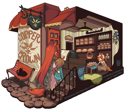 Cerys and Cleyn are visiting their favorite tailor.This is a commission I had did for *wingraine , it took a super long time to complete ;;. Thankfully she was super kind and patient.