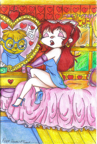 I was feeling kinda sleepy the other night and so I wanted to draw Jeanette sleeping on a very big pillow.Hope you like it.