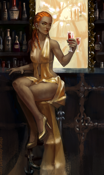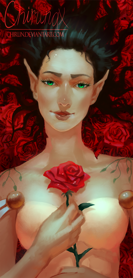 As always, the certain "roughness" I've become familiar to in your recent works has a welcome charm and your choice of design for the subject is tasteful. As always, I would enjoy a certain bit of sharpness in certain parts of the subject and in this case it is with the object in her hand. The smattering of golden speckles on the subject's skin is a wonderful touch implying a divine air and the lighting around her is nicely placed.