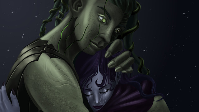 woooooooah~ what an intruiging story, I love it! and such a wonderful picture, the contrast of light and dark, man and woman, strong and feeble (worth applying to both in different views