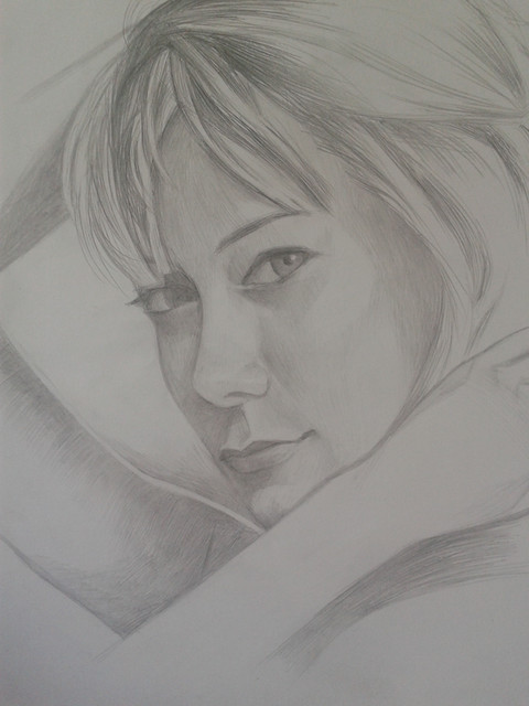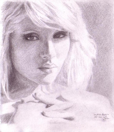 This was my first attempt to draw women with just a pencil (I think I did it when I was 16). I think it's the best drawing I've ever done.. even though it's not as good as I wanted it to be.. I'm always afraid to ruin it, so I do not work on it any more.Anyway I always focus on the eyes, most of the times I just stop looking at the picture and put "myself" in the eyes of the girl I'm drawing..