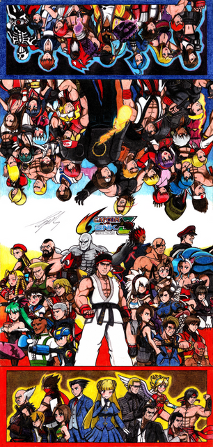 A fan art for my Capcom Team Official Site: Ryu (SF 3rd Strike), Sakura (SF Zero 2), Yun (SF 3rd Strike), Claire (Resident Evil: CV), Akira (Rival Schools), Accel (Power Stone 2), Yang (SF 3rd Strike) & Shoma (Rival Schools)artΒ©Chloebs de Asis