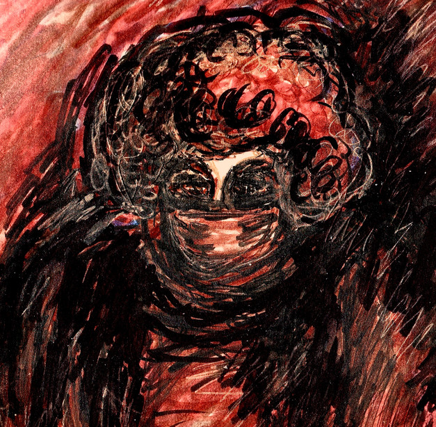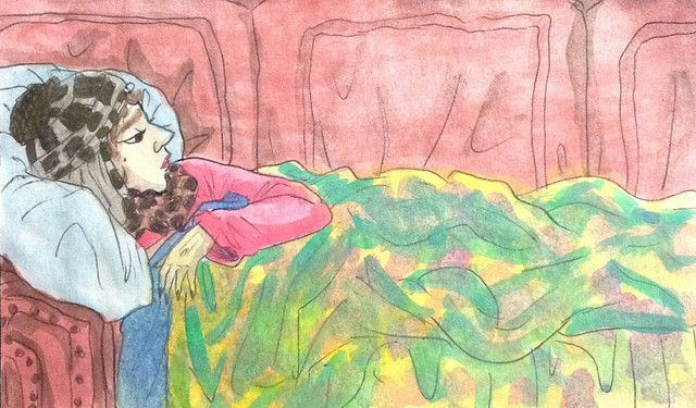 Inktober 2020Throw .... I normally donβt like to explain my drawings... but this one is based on a vague memory of being sick and wrapping up in a throw that my grandmother crocheted .... I felt clunky and miserable.