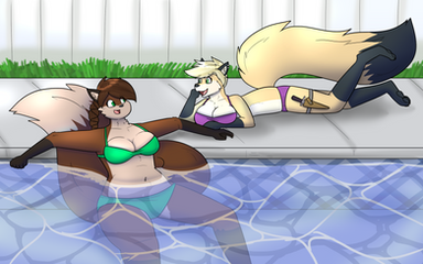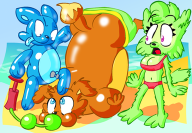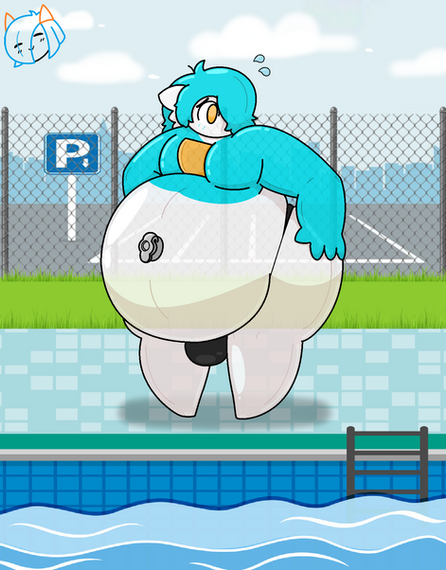 Emily and Gemma get ready for a relaxing day by the pool. :3Emily wants to blow up an inner tube, but for some reason, it doesn't seem to be inflating... wonder what's wrong? Maybe if she tries to inflate it a little faster... Poor Gemma might burst at this rate! D: