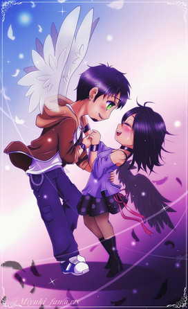 It's fanart like this that makes it so hard for me to choose an OTP, there are so many good pairings. Brilliant picture, I just adore the scene, and I like the touch of the feathers flying over.